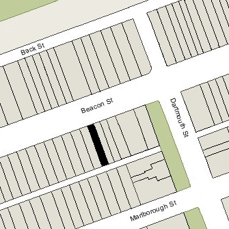 267 Beacon is located on the south side of Beacon, between Dartmouth and Exeter, with 265 Beacon to the east and 269 Beacon to the west.