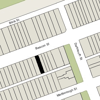 269 Beacon is located on the south side of Beacon, between Dartmouth and Exeter, with 267 Beacon to the east and 271 Beacon to the west.