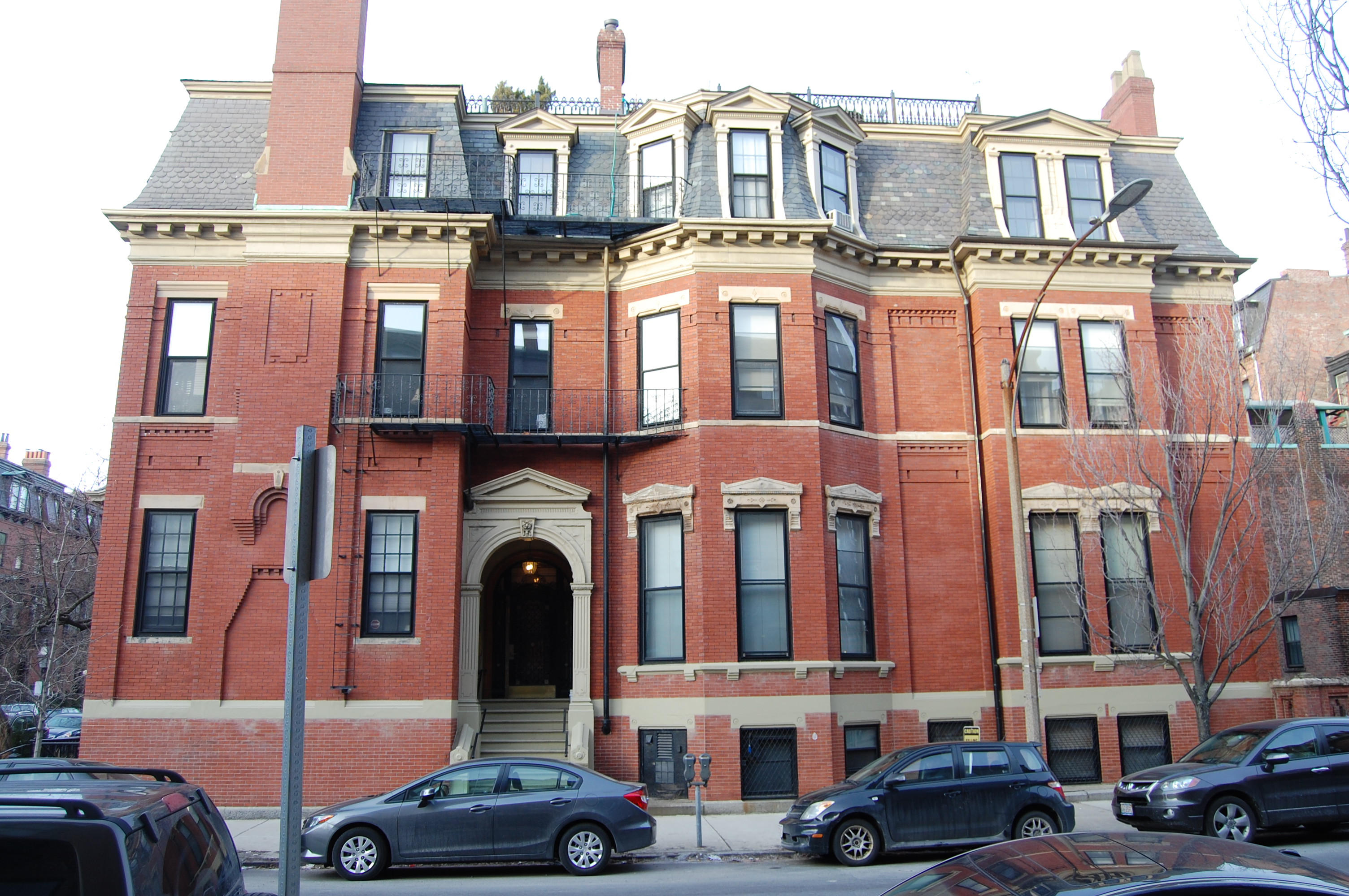 274 Clarendon (101 Marlborough) was designed by Peabody and Stearns, architects, and built in 1871-1872 by Weston & Shepard, masons, and Grimes & Murray, carpenters, for Augustus Flagg and his wife, Lucy (Hobbs) Flagg.
