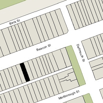 277 Beacon is located on the south side of Beacon, between Dartmouth and Exeter, with 275 Beacon to the east and 279 Beacon to the west.