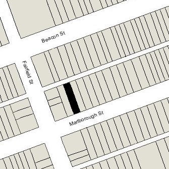 Click here for an index to the deeds for 277 Marlborough; click here for more information on the land at 277-279 Marlborough and 8-10-12 Fairfield; and click here for further information about all of the land between the north side of Marlborough and Alley 417, from Exeter to Fairfield.