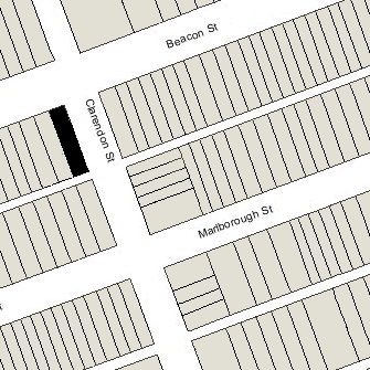 278 Clarendon is located on SW corner of Beacon and Clarendon, with 182 Beacon to the north, across Beacon, 274 Clarendon to the south, across Alley 419, 285 Clarendon (201 Beacon) to the east, across Clarendon, and 205 Beacon to the west.