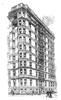 On July 16, 1894, he filed a permit application for the new building, indicating that it would be ten stories with 26 apartments. The total height, from the sidewalk to the highest part of the wall was shown as 116 feet.