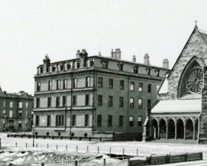 The townhouse which Haddon Hall replaced was built in 1863-1864, one of three contiguous houses (29-31-33 Commonwealth) built at the same time, and one of ten contiguous houses (29-31-33-35-37-39-41-43-45-47 Commonwealth) built in the same design between 1863 and 1873.