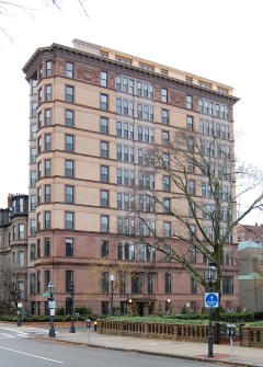 282 Berkeley (29 Commonwealth) was designed by architect J. Pickering Putnam and built in 1894-1895 for real estate developer William Henry Harrison Newman as Haddon Hall, a 26 unit apartment hotel.