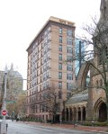 William Newman proceeded with his plans for an apartment hotel, without bays on Berkeley Street, and on April 25, 1894, the Transcript reported that he proposed that the top story of the existing house at 29 Commonwealth “will be removed and four additional stories built on, making the building seven stories high, and an addition, 24 by 32 feet in area, will be erected, also seven stories high. This addition will be constructed of brick and stone, to correspond with the old part.” The addition would have been in the former rear yard of 29 Commonwealth.