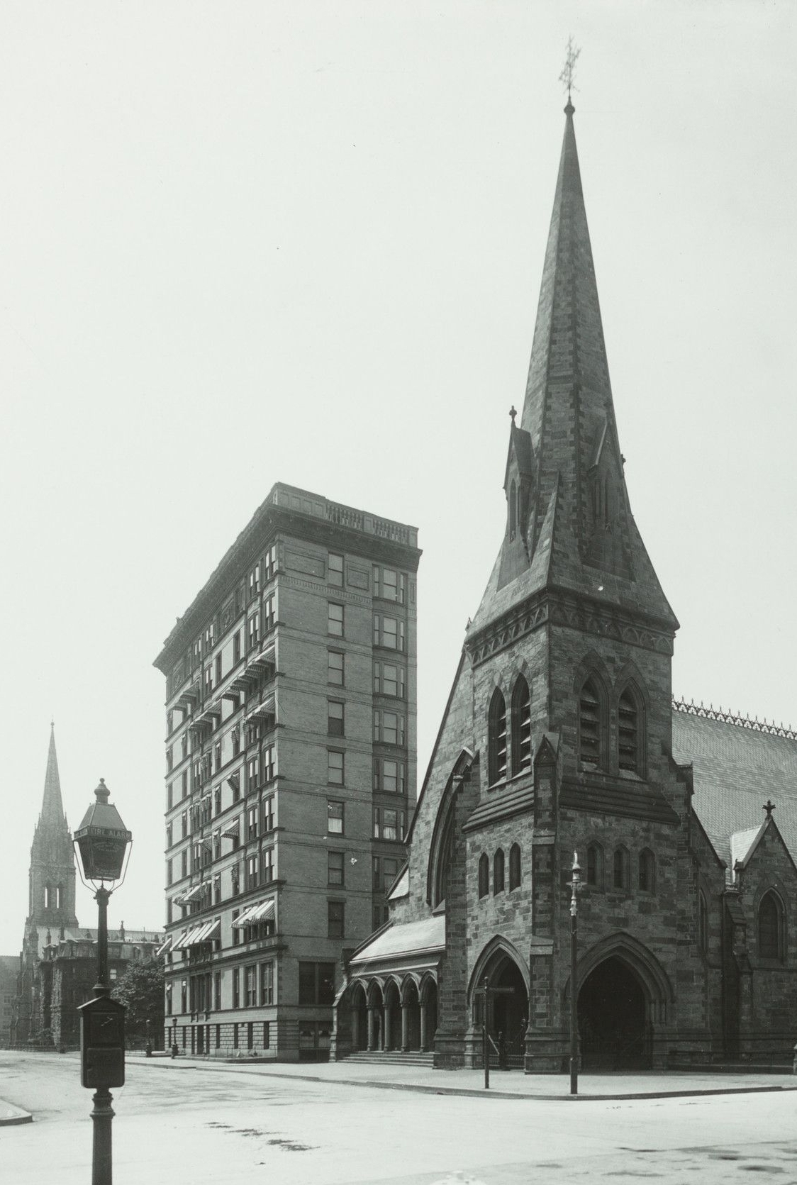 282 Berkeley (29 Commonwealth) and First Church Boston (1927); courtesy of the Boston Public Library, Leslie Jones Collection.