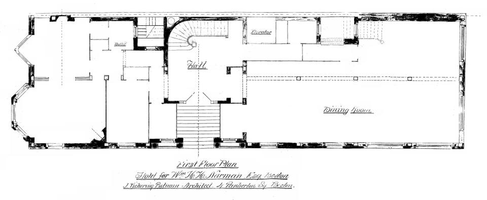 Berk 282 – First Floor Plan (1894) BW ← Previous Next → First floor plan of 282 Berkeley (29 Commonwealth), from original blueprints drawn by J. Pickering Putnam (1894); courtesy of the Boston Public Library Arts Department