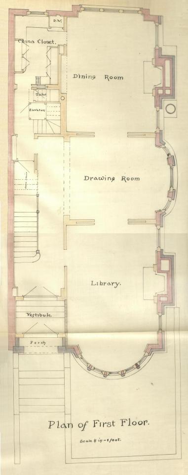 Comm 282 – Floor Plan (1886) First ← Previous Next → First floor plan of 282 Commonwealth, bound with the final building inspection report, 15Dec1886 (v. 17, p. 37); courtesy of the Boston Public Library Arts Department