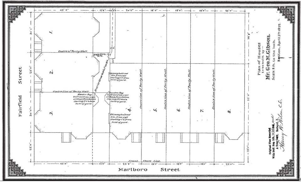 Deed 1126-end (1872 Plan – 282-292 Marl – 7-9 Fair) ← Previous Plot plan of 282-290 Marlborough and 7-9 Fairfield showing easements; 17Apr1872; Suffolk County Deed Registry, Book 1126 (end)