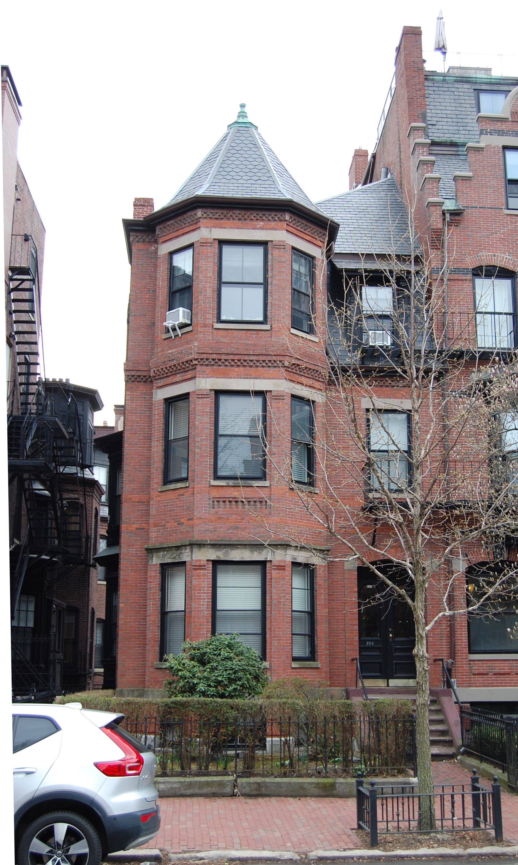 284 Marlborough is located on the south side of Marlborough, between Fairfield and Gloucester, with 282 Marlborough to the east and 286 Marlborough to the west.