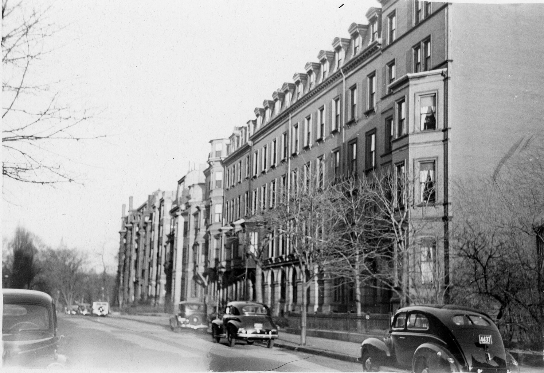Looking east from 30 Marlborough towards the Public Garden (ca. 1942), photograph by Bainbridge Bunting, courtesy of The Gleason Partnership