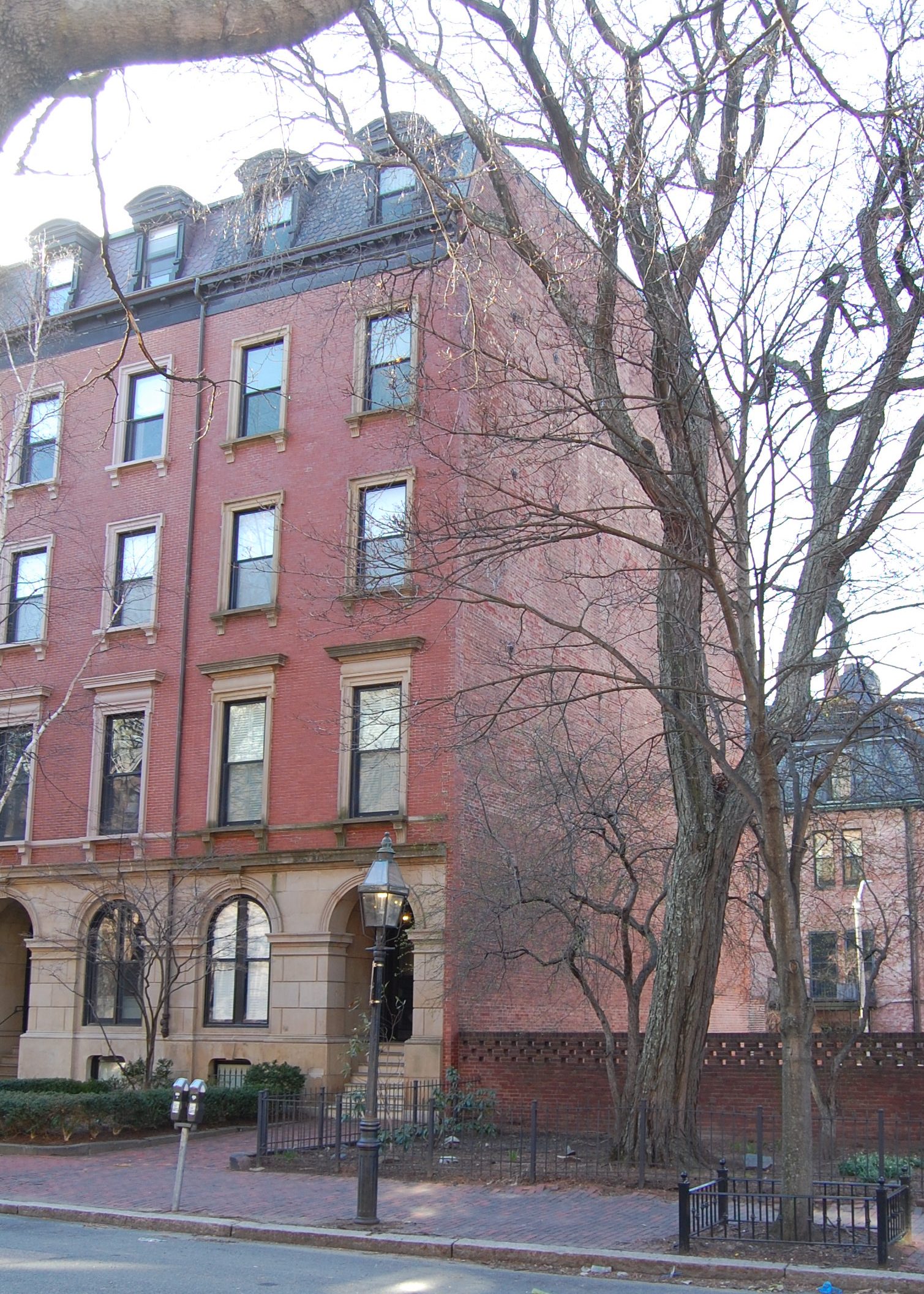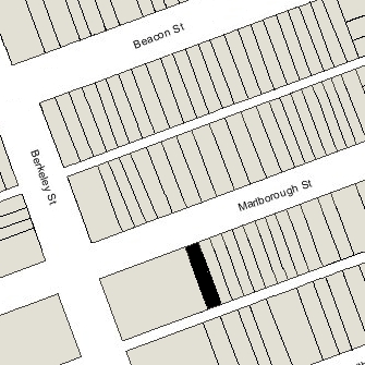 30 Marlborough is located on the south side of Marlborough, between Arlington and Berkeley, with 28 Marlborough to the east and the First Lutheran Church to the west.