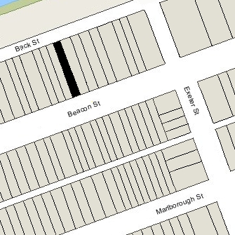 300 Beacon is located on the north side of Beacon, between Exeter and Fairfield, with 298 Beacon to the east and 302 Beacon to the west.