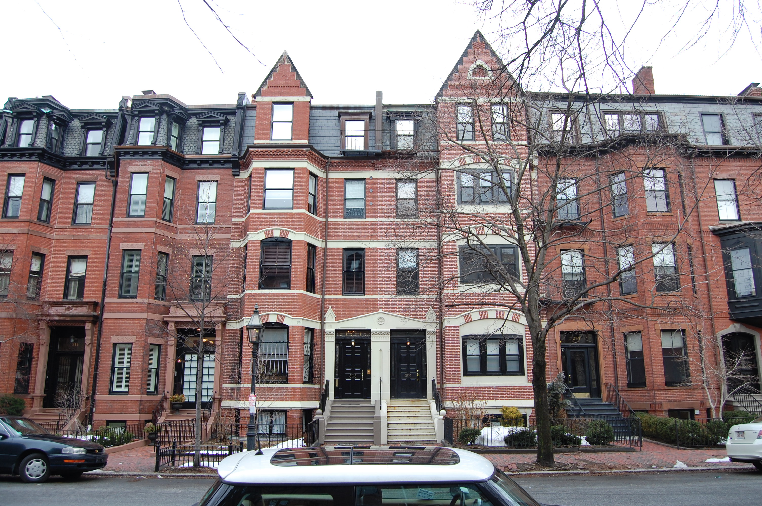 303 Marlborough is located on the north side of Marlborough, between Fairfield and Gloucester, with 301 Marlborough to the east and 309 Marlborough to the west.