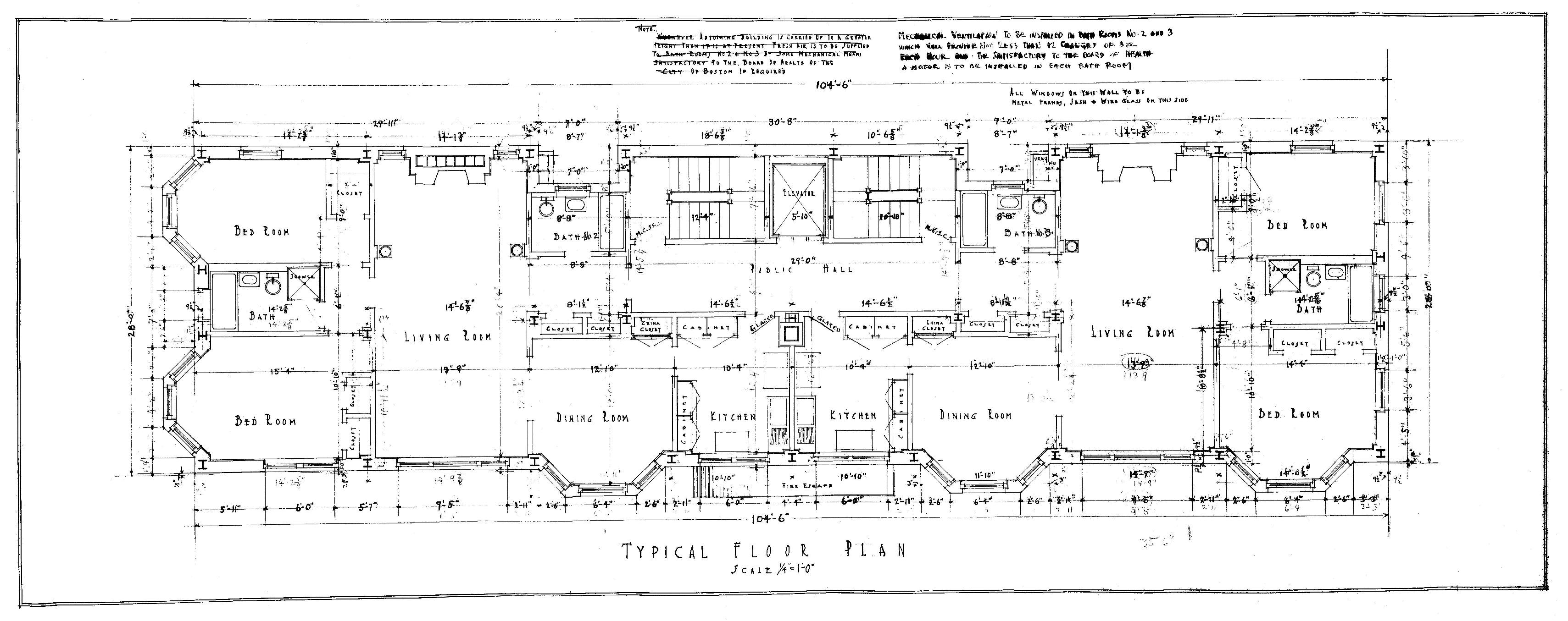 Typical floor plan (for floors above the first floor) of 311 Commonwealth (1924), by Funk and Wilcox; Boston City Archives, City of Boston Blueprints Collection