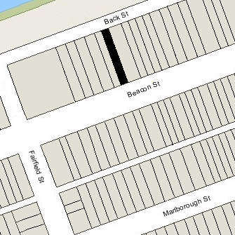 312 Beacon is located on the north side of Beacon, between Exeter and Fairfield, with 310 Beacon to the east and 314 Beacon to the west.