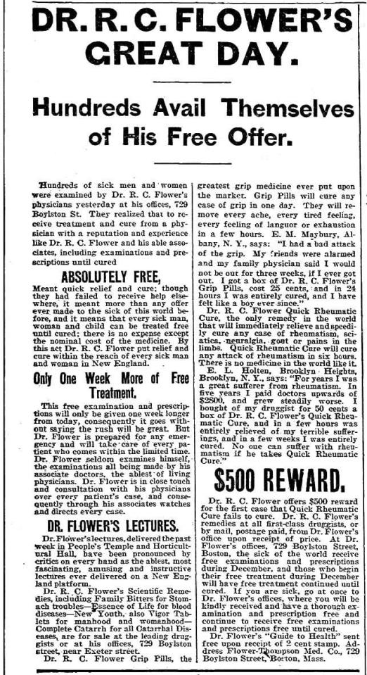 Flower, Richard – 1897-12-12 – Boston Herald ← Previous Advertisement from the Boston Herald, 12Dec1897