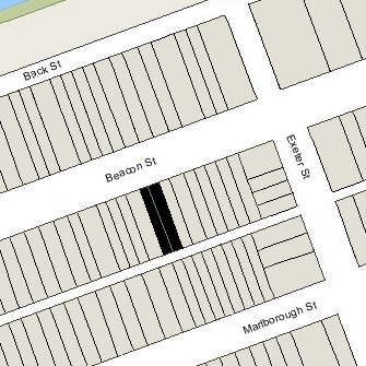 Click here for indices to the deeds for 315 Beacon and for 317 Beacon, and click here for further information about the land between the south side of Beacon and Alley 417, from Exeter to Fairfield.
