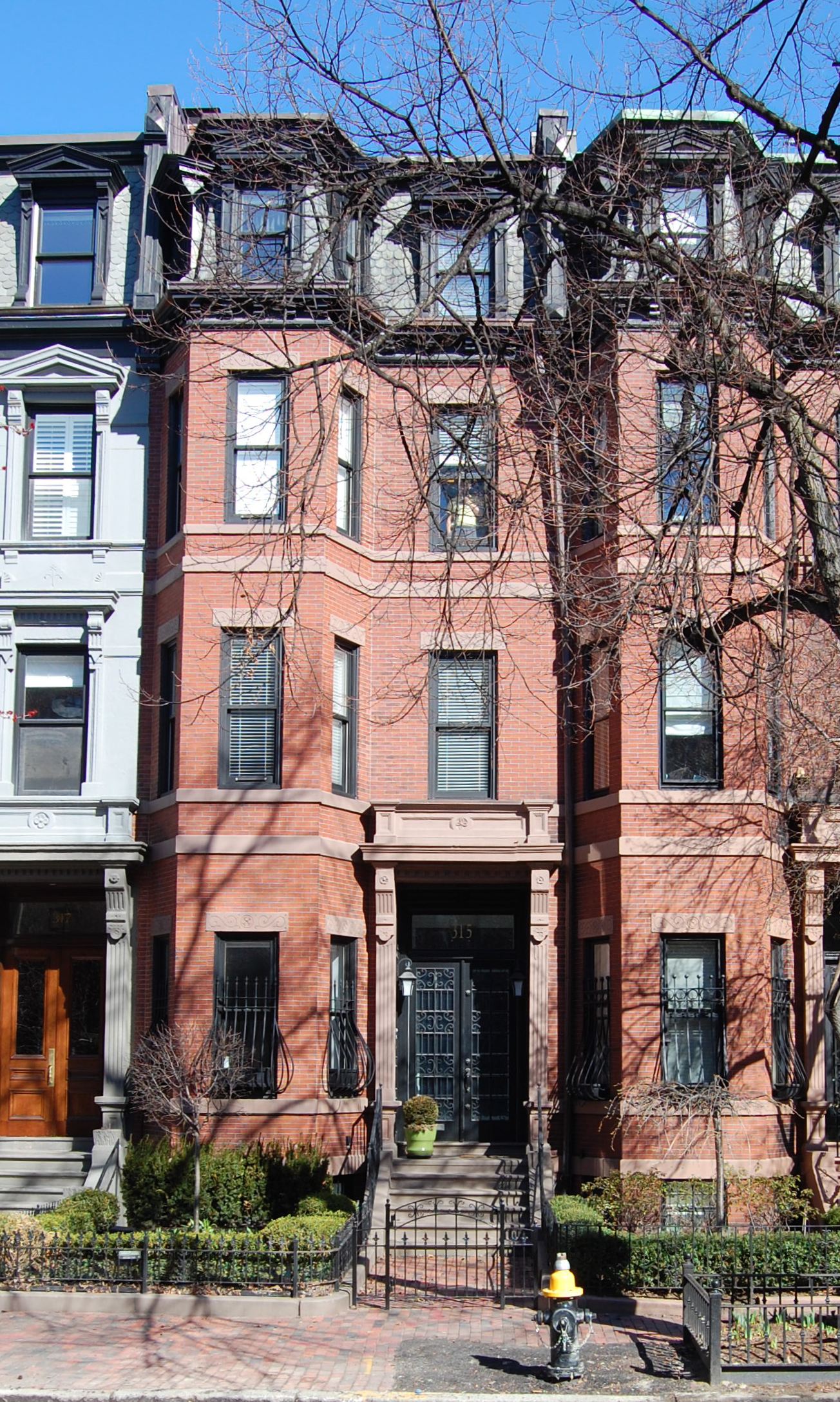 315 Marlborough was built in 1877-1878 by builder Daniel W. Beckler, one of four contiguous houses (309-311-313-315 Marlborough) built at the same time.