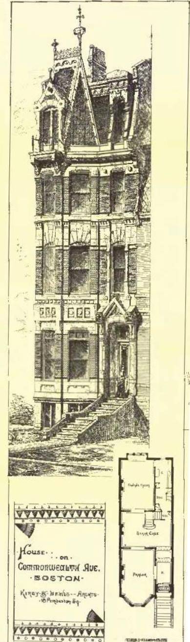 319 Commonwealth was designed by Kirby and Lewis. architects, and built in 1878-1879, one of three contiguous houses built by building contractor Asa Harden Caton for speculative sale on land owned by wallpaper merchant Charles Henry Hayden. 319 Commonwealth was built first and completed in 1879; 321-323 Commonwealth were completed in 1880.