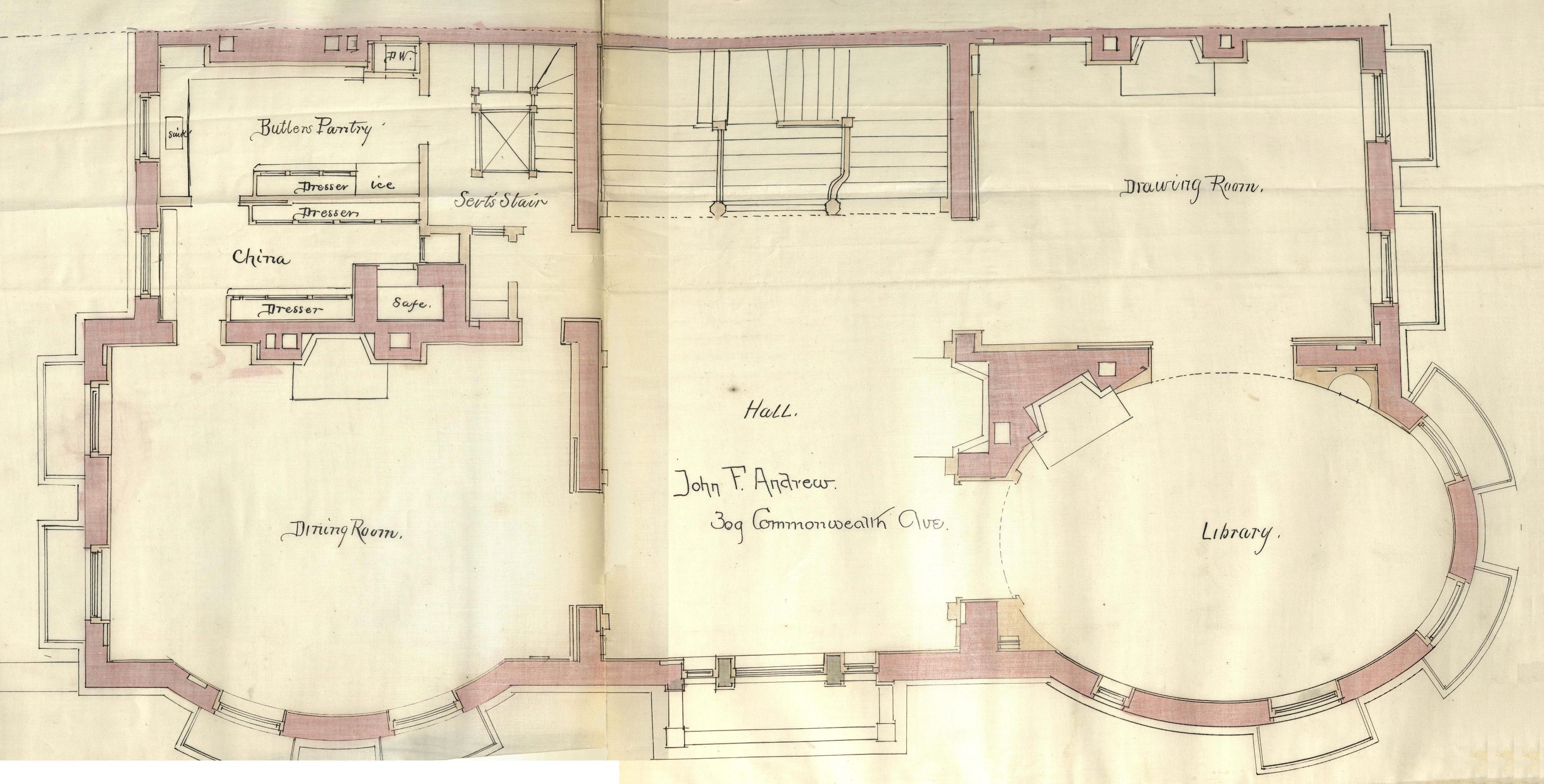 Here 032 – Floor Plan (1886) Second ← Previous Next → Second floor plan of 32 Hereford (shown as 309 Commonwealth), bound with the final building inspection report , 2Dec1886 (v. 16, p. 116); courtesy of the Boston Public Library Arts Department