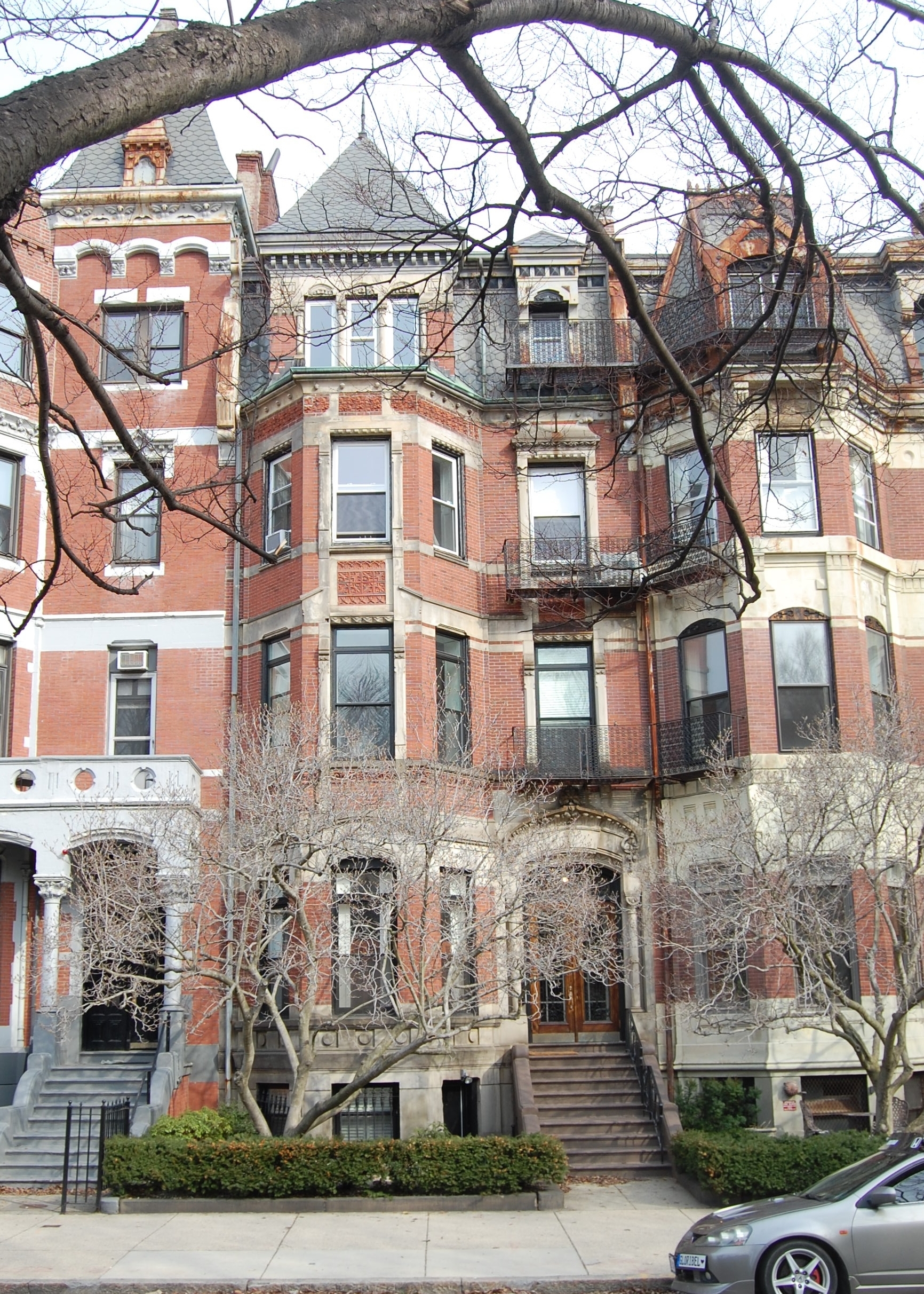 A July 30, 1879, article in the Boston Herald also indicates that 321-323 Commonwealth were designed by Kirby and Lewis, and describes the two houses in some detail. “No. 321 is of 24 feet front by 63 feet in depth, of three stories and a French roof and basement. It has a very fine gothic front. The other house, which is 26 by 68 feet in size, and of a corresponding height, has a front fashioned after the German style. Some novel features about this may be mentioned. There is a heavy balustrade on the second story and a second story porch — something altogether new in Boston architecture. There is also a tower on 323, the top of which is 70 feet above the street level. The fronts of both houses are of brick and Ohio stone, and the block, for both houses constitute a symmetrical block, presents a very fine appearance. The insides of the buildings are finished in hard woods, and they will cost respectively $20,000 and $23,000.”
