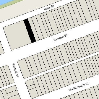 322 Beacon is located on the north side of Beacon, between Exeter and Fairfield, with 320 Beacon to the east and 330 Beacon to the west.