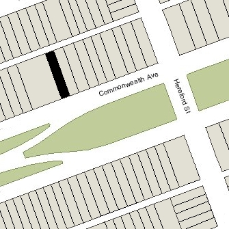 329 Commonwealth is located on the north side of Commonwealth, between Hereford and Massachusetts Avenue, with 327 Commonwealth to the east and 333 Commonwealth to the west.