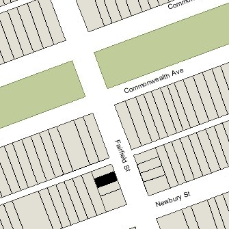 33 Fairfield is located on the west side of Fairfield, between Commonwealth and Newbury, with 31 Fairfield to the north and 35 Fairfield to the south.