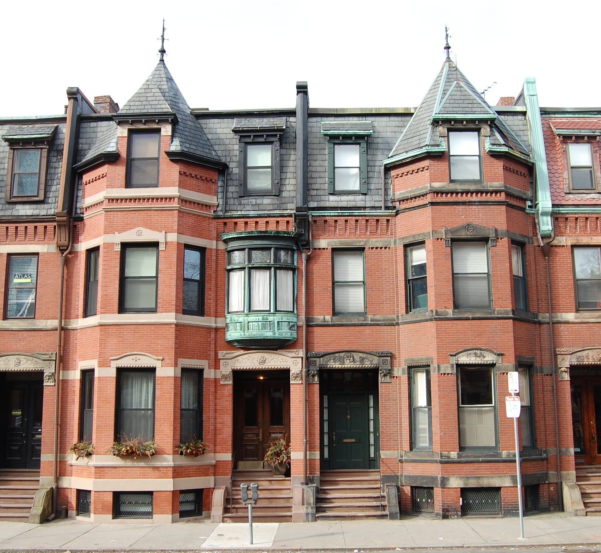 An April 12, 1879, Boston Journal on “Building Operations in the Back Bay” summarized the development of the eight houses as of the spring of 1879: “On Fairfield street, between Commonwealth avenue and Newbury street, Luther M. Merrill has erected a block of four small houses, 26 [sic] by 44 feet, two stories, Mansard roof. These houses contain eleven rooms, and have been sold for $10,000 and $11,000 each. On the opposite side of the street the same builder has erected for Asa P. Potter two houses of the same style and dimensions, and has a permit for two more.”