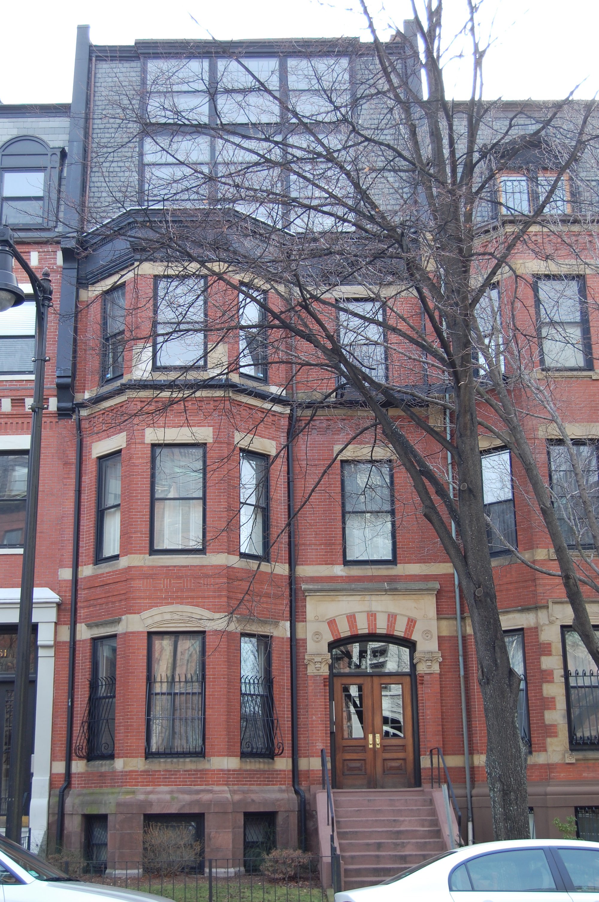 In May of 1933, it applied for (and subsequently received) permission to remodel the property and convert it from three apartments and a studio apartment into four apartments. Plans for the remodeling, designed by architect S. Bruce Elwell, are included in the City of Boston Blueprints Collection in the Boston City Archives (reference BIN P-110).