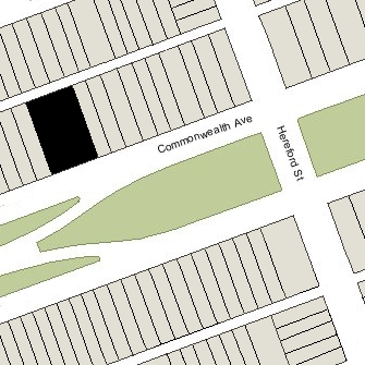 333 Commonwealth is located on the north side of Commonwealth, between Hereford and Massachusetts Avenue, with 329 Commonwealth to the east and 337 Commonwealth to the west.