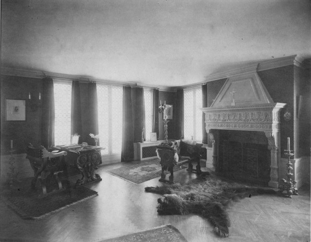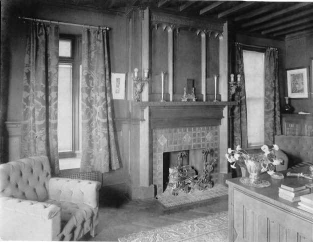334 Beacon: Second floor – Sitting room, outfitted as library, looking southwest; C. W. Barron Collection