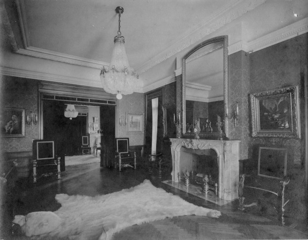 334 Beacon: First floor – Drawing room looking north to reception room (library) ; C. W. Barron Collection