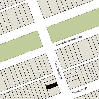 34 Gloucester is located on the west side of Gloucester, between Commonwealth and Newbury, with 32 Gloucester to the north and 36 Gloucester (279-A Newbury) to the south.