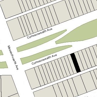340 Commonwealth is located on the south side of Commonwealth, between Hereford and Massachusetts Avenue, with 338 Commonwealth to the east and 342 Commonwealth to the west.