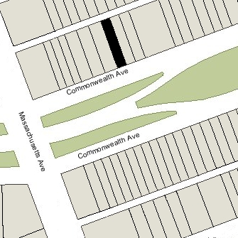 341 Commonwealth is located on the north side of Commonwealth, between Hereford and Massachusetts Avenue, with 339 Commonwealth to the east and 343 Commonwealth to the west.