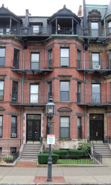 340-360 Commonwealth were built between 1883 and 1885 on Jacob Rogers’s land. All of the building permit applications were filed by George Wheatland, Jr., in November of 1883, and the houses were constructed by Vinal & Dodge, with the houses towards the east built first. Jacob Rogers sold his land to George Wheatland, Jr., in one- and two-lot transactions between November of 1883 and January of 1885, sometimes before construction of the houses had begun and sometimes after the houses were substantially completed.