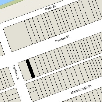 345 Beacon is located on the south side of Beacon, between Exeter and Fairfield, with 343 Beacon to the east and 347 Beacon to the west.