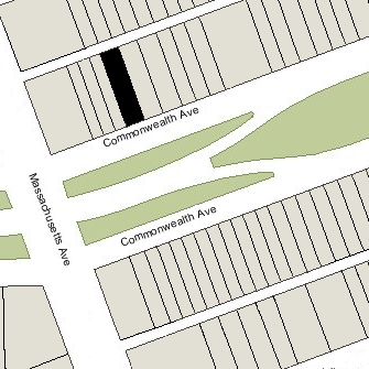347 Commonwealth is located on the north side of Commonwealth, between Hereford and Massachusetts Avenue, with 345 Commonwealth to the east and 349 Commonwealth to the west.