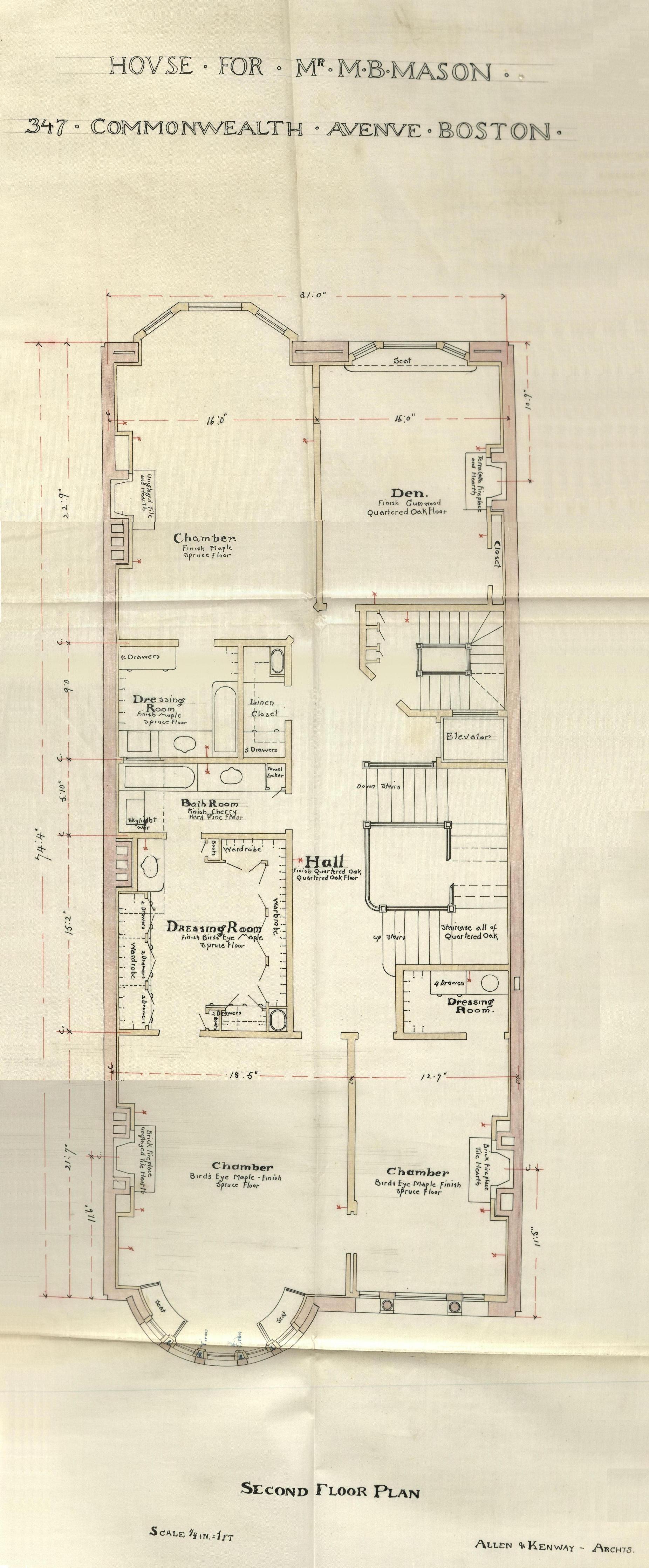 Before moving to 347 Commonwealth, the Ratsheskys remodeled the interior. Plans for the remodeling, designed by architect G. Henri Desmond, are included in the City of Boston Blueprints Collection in the Boston City Archives (reference BIN A-29.).