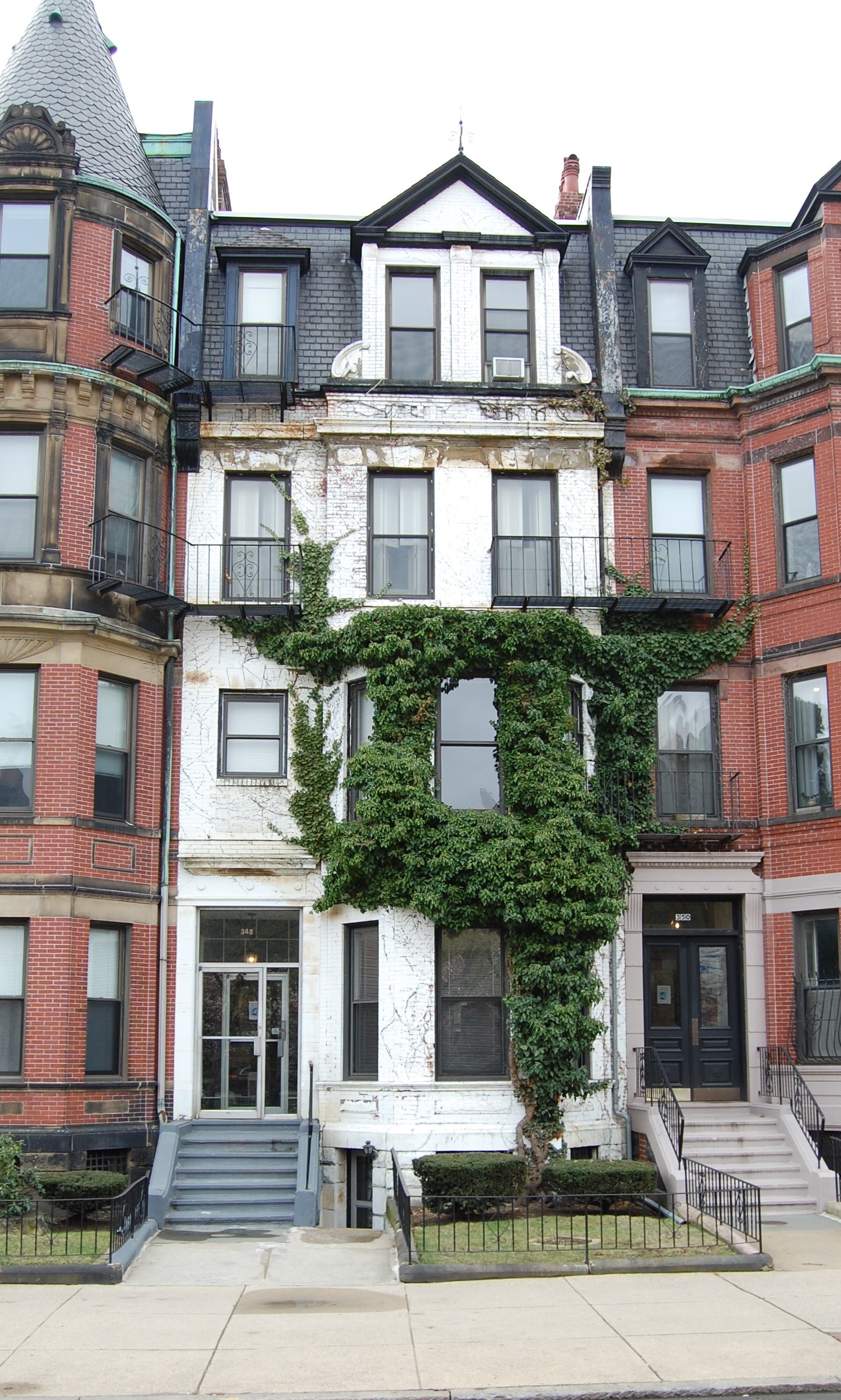 348 Commonwealth is located on the south side of Commonwealth, between Hereford and Massachusetts Avenue, with 346 Commonwealth to the east and 350 Commonwealth to the west.