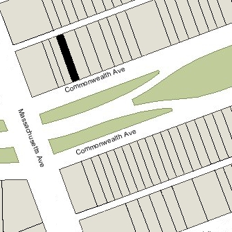349 Commonwealth is located on the north side of Commonwealth, between Hereford and Massachusetts Avenue, with 347 Commonwealth to the east and 351 Commonwealth to the west.
