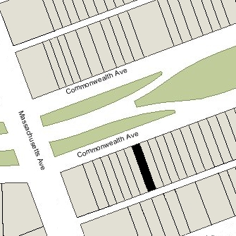 350 Commonwealth is located on the south side of Commonwealth, between Hereford and Massachusetts Avenue, with 348 Commonwealth to the east and 352 Commonwealth to the west.