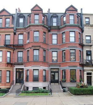 340-360 Commonwealth were built between 1883 and 1885 on Jacob Rogers’s land. All of the building permit applications were filed by George Wheatland, Jr., in November of 1883, and the houses were constructed by Vinal & Dodge, with the houses towards the east built first. Jacob Rogers sold his land to George Wheatland, Jr., in one- and two-lot transactions between November of 1883 and January of 1885, sometimes before construction of the houses had begun and sometimes after the houses were substantially completed.