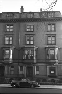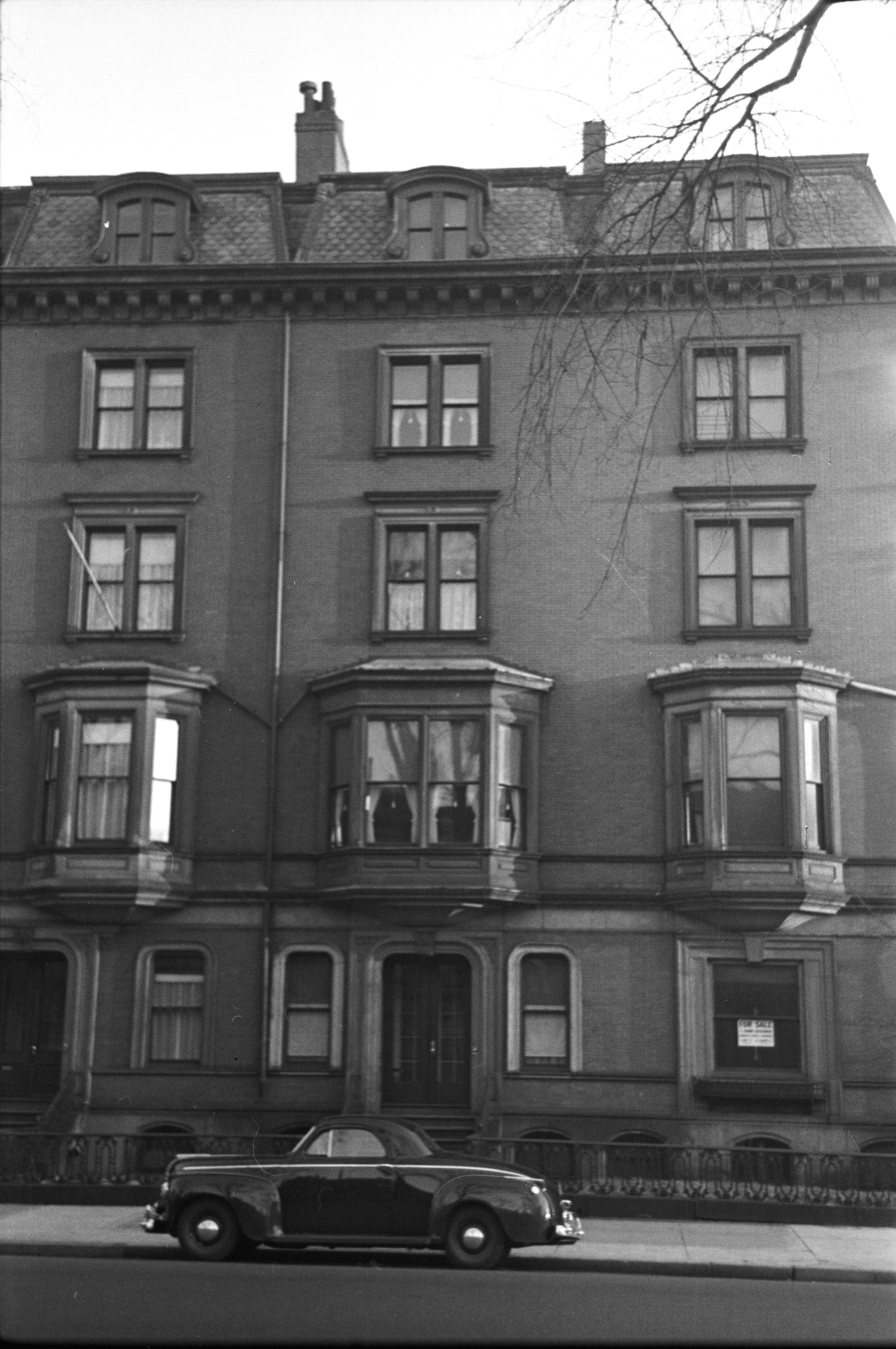 34-36 Commonwealth (ca. 1942), with “for sale” sign in the window of 36 Commonwealth; photograph from negative by Bainbridge Bunting, courtesy of the Boston Public Library Arts Department and Digital Commonwealth; licensed under a Creative Commons Attribution Non-Commercial No Derivatives License.