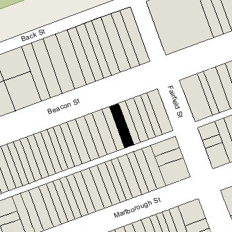 361 Beacon is located on the south side of Beacon, between Fairfield and Gloucester, with 359 Beacon to the east and 363 Beacon to the west.