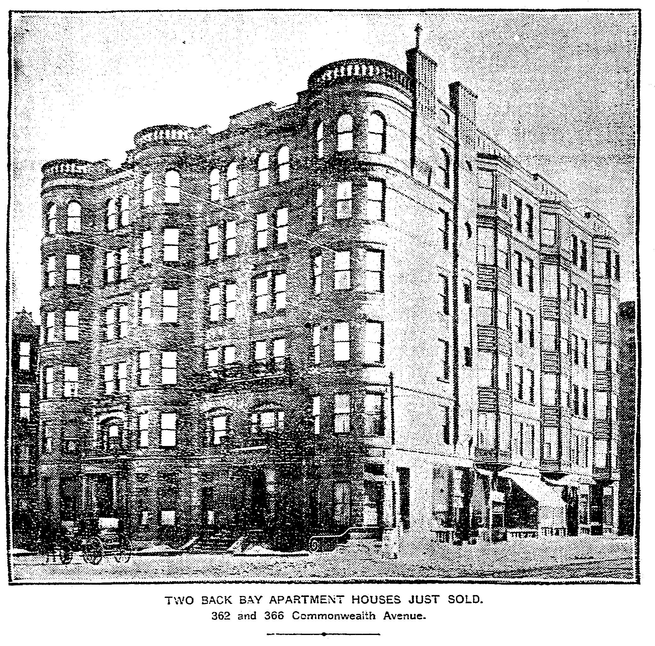 On February 15, 1905, 362-366 Commonwealth was acquired from Nathan Matthews, Jr., and George Howe by William H. Lincoln and Joseph Benjamin Moors. After they acquired the buildings, both buildings were known as The Commonwealth.