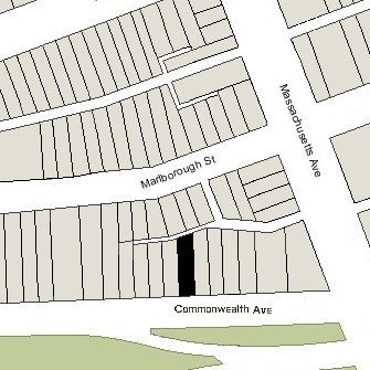 Click here for an index to the deeds for 383 Commonwealth, and click here for further information on the land west of Massachusetts Avenue between the south side of Beacon and the north side of Commonwealth.
